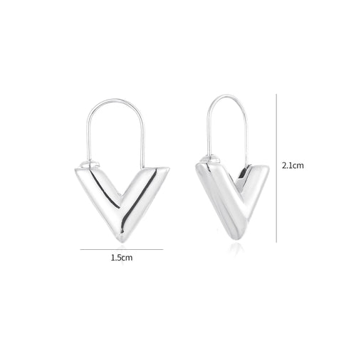 Zilveren V oorbellen. Deze oorbellen zijn 2.1cm lang. Gemaakt van Hoogwaardig Stainless Steel.