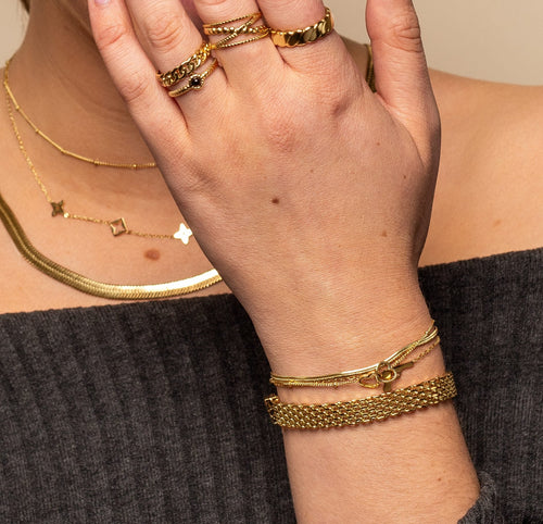 Wij vinden dat iedereen mooie sieraden moet kunnen dragen, ongeacht je maat. Daarom zijn veel van onze stukken verstelbaar. Te strak? Maak het losser. Te los? Trek het wat aan. Zo simpel is het. Of het nou een armband, ring, enkelbandje of ketting is, jij bepaalt hoe het zit. Want alleen als het lekker zit, voel je je er ook goed bij.