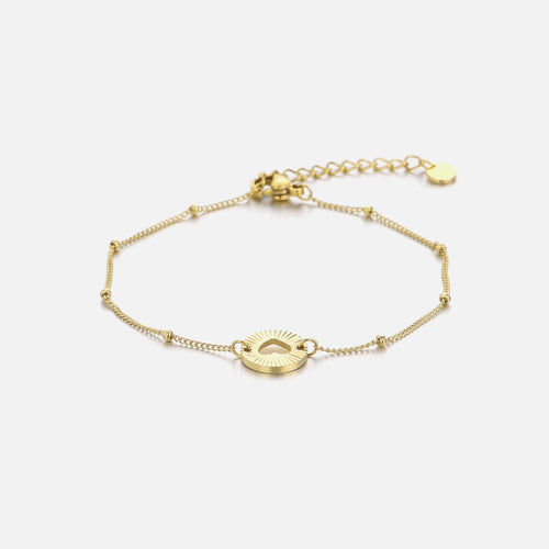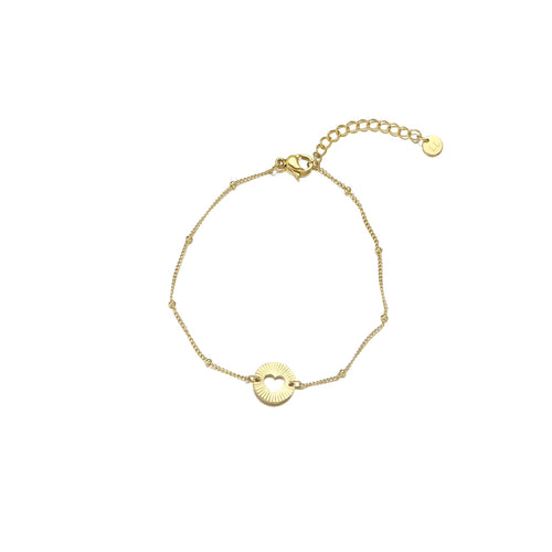 Gouden armband met open hartje. 16 cm lang en kan nog eens met 4 cm verlengd worden. Gemaakt van hoogwaardig stainless steel. Armband is verstelbaar en geschikt voor verschillende polsmaten.