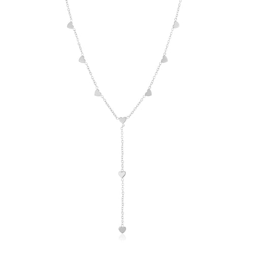 Zilveren Y-vorm ketting met hartjes. Lengte 40cm en nog eens te verlengen met 5cm. Gemaakt van hoogwaardig stainless steel.