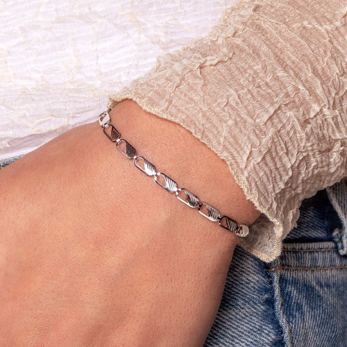 Deze armband met klassieke schakel is 16 cm lang en kan nog eens met 4 cm verlengd worden. Gemaakt van hoogwaardig stainless steel. Dankzij het verlengstukje is de armband verstelbaar en geschikt voor verschillende polsmaten. Deze tijdloze armband is de ideale combineer armband.
