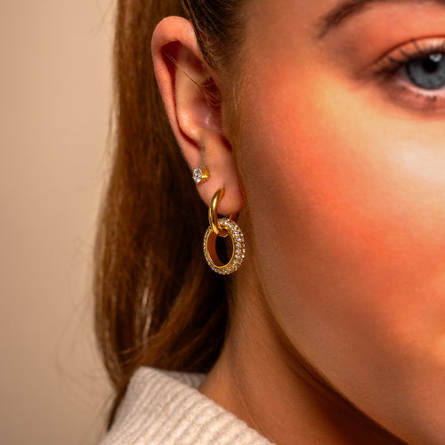 Gouden Hoops met steentjes ring. De oorbel is 2.6cm lang. Gemaakt van hoogwaardig stainless steel.