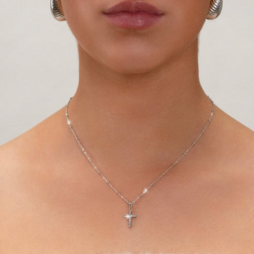 Zilveren ketting met diamanten kruisje. Lengte 40cm en nog eens te verlengen met 5cm. Gemaakt van hoogwaardig stainless steel.