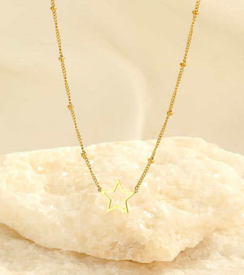 Gouden ketting met ster. Lengte 40cm en nog eens te verlengen met 5cm. Gemaakt van hoogwaardig stainless steel.