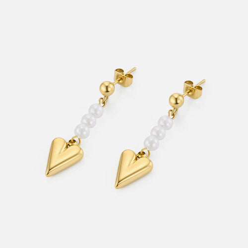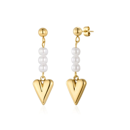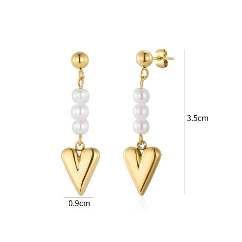 Oorstekers hangend hart parels goud zijn 3.5cm lang en 0.9cm breed. Gemaakt van hoogwaardig stainless steel.