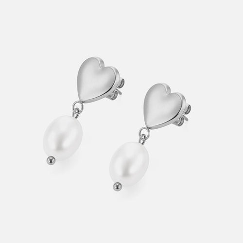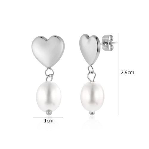 Oorstekers hart met parel zilver zijn 2.9cm lang en 1cm breed. Gemaakt van hoogwaardig stainless steel.