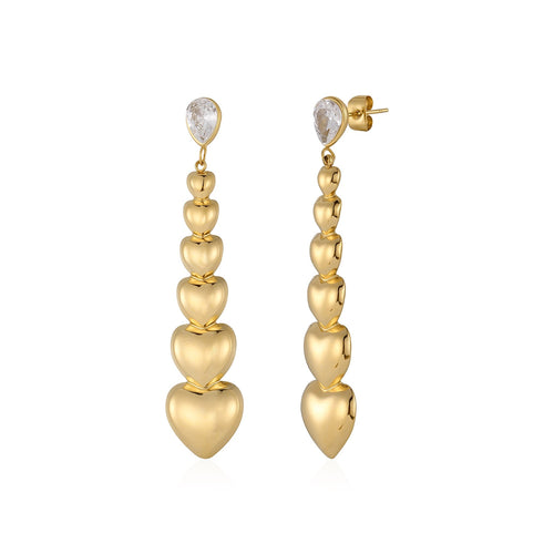 Oorstekers stacked hearts goud zijn 5.8cm lang en 1.2cm breed. Gemaakt van hoogwaardig stainless steel.